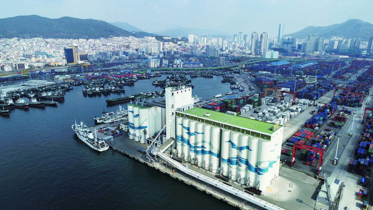 | 부산 북항 양곡부두 전경. 2027년 부산 신항에 신규 양곡부두가 들어서면 북항 양곡부두는 기능을 멈추게 된다. [고려사일로 제공] |