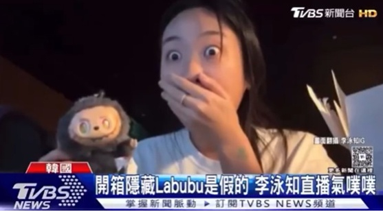 해당 영상은 대만 방송 TVBS 뉴스 화면으로, 이영지가 ‘라부부’ 인형을 구매해 언박싱하는 장면이 담겼다.