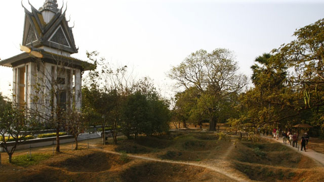 수도 프놈펜의 초응엑 대량 학살센터는 킬링필드 중 가장 잘 알려진 곳이다. 이곳은 처형장이자 집단 무덤이기도 한 장소였다.