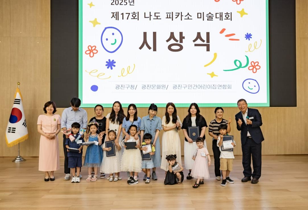 올해로 17회를 맞이한 ‘나도피카소’ 미술대회는 광진구 민간어린이집연합회가 주관, 민간어린이집 원아 600여 명이 참여해 저마다의 상상력과 창의력을 작품으로 표현했다. 심사는 광진문화원 소속 심사위원 2인이 공정한 기준에 따라 진행, 총 36점의 수상작이 선정됐다.