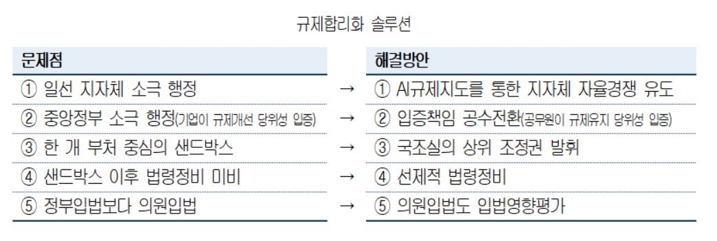 이 교수는 이와 함께 ▷AI 규제 지도를 통한 소극행정 완화 ▷규제혁신의 공수전환(공무원이 규제유지 당위성 입증) ▷범부처적 규제개선 ▷샌드박스 데이터 축적 후 선제적 법령정비 ▷의원 입법에 대한 규제영향평가 도입 등을 제안했다.