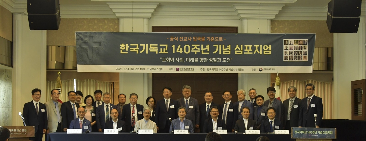 한교총은 14일 서울 중구 한국프레스센터에서 한국교회 지도자들과 신학대학교 교수, 각계 인사 등 150여 명이 참석한 가운데 ‘한국기독교 140주년 기념 심포지엄’을 개최했다. ‘교회와 사회, 미래를 향한 성찰과 도전’이라는 주제로 열린 이날 심포지엄에서는 한국기독교 140년의 역사를 성찰하고, 사회 속 교회의 역할을 재고하며, 미래를 향한 변화와 도전 과제를 되새겼다.