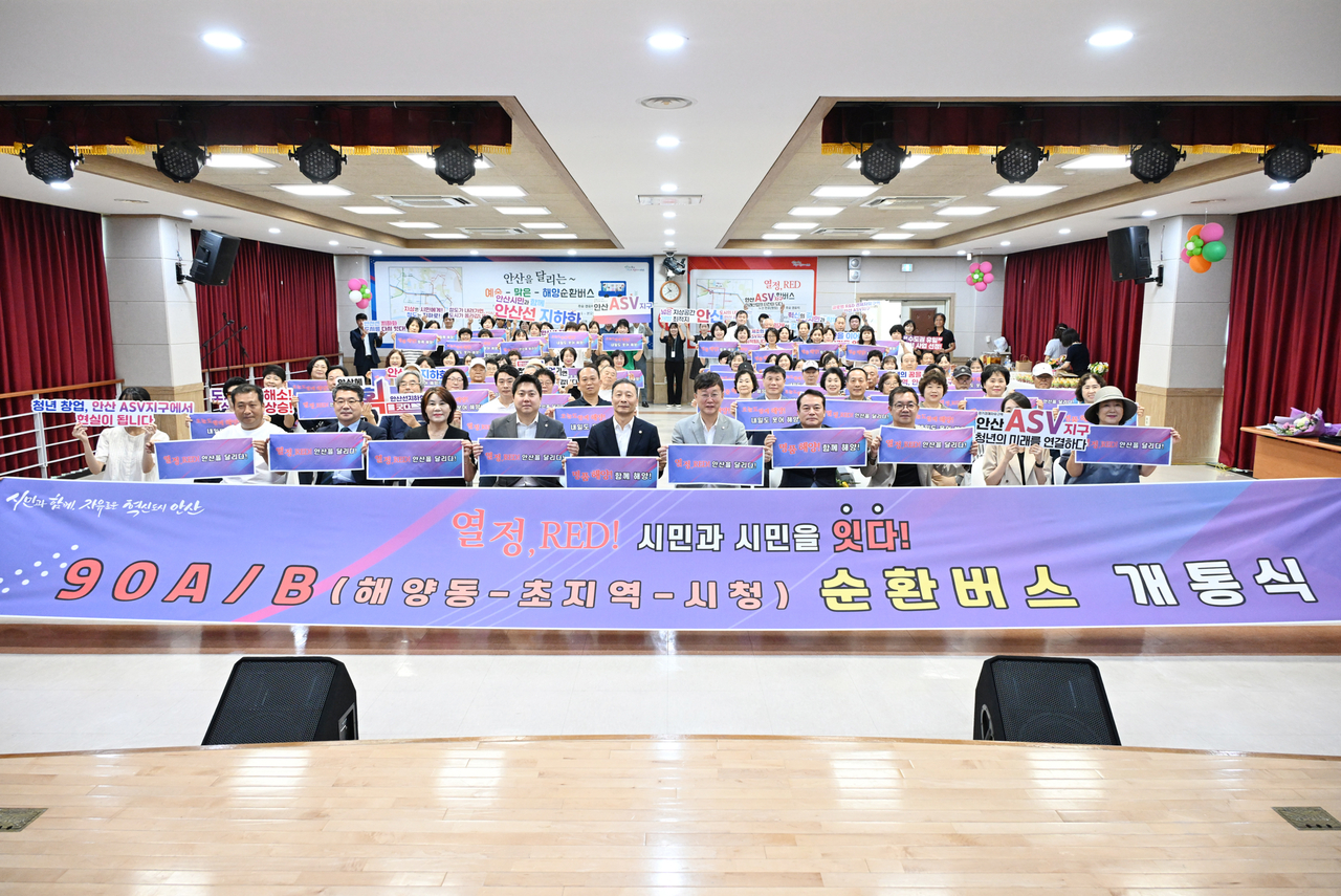 이번 개통식에는 이민근 안산시장을 비롯해 안산시의회 의원과 지역 주민 등 100여 명이 참석한 가운데, 안산 서남부권의 새로운 교통 축이 될 ‘90AB 순환버스’개통 축하의 시간이 진행됐다.