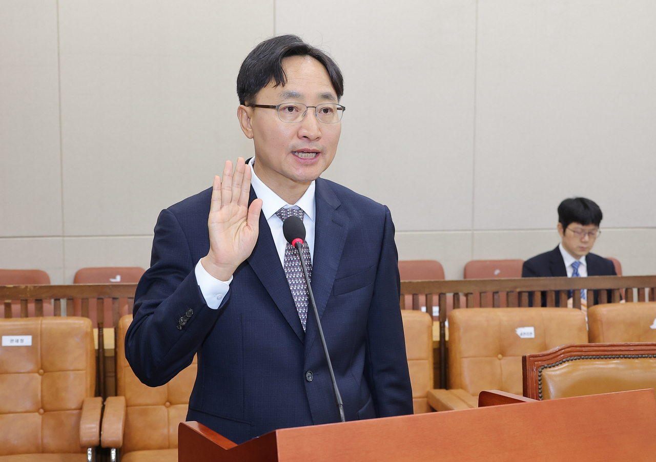 | 임광현 국세청장 후보자가 15일 서울 여의도 국회 기획재정위원회에서 열린 인사청문회에서 선서하고 있다. [연합] |