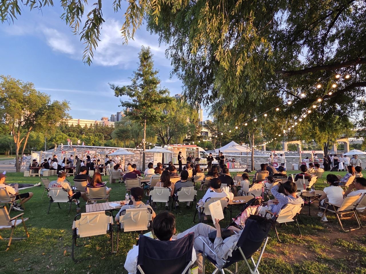 또, 한강공원을 찾은 다양한 연령대의 주민들을 위해 시와 어울리는 무알콜 칵테일을 맛볼 수 있는 ‘Book & Drink’, 최근 넷플릭스 인기작 ‘케이팝 데몬 헌터스’에 등장하는 까치와 호랑이 등을 활용한 노리개 만들기, 책 속에 작은 정원을 꾸미는 책(꽃)갈피 만들기, 뜨개 키링만들기, 여행하는 서재 자동차 모형 만들기 등 다채로운 체험 프로그램도 운영됐다.