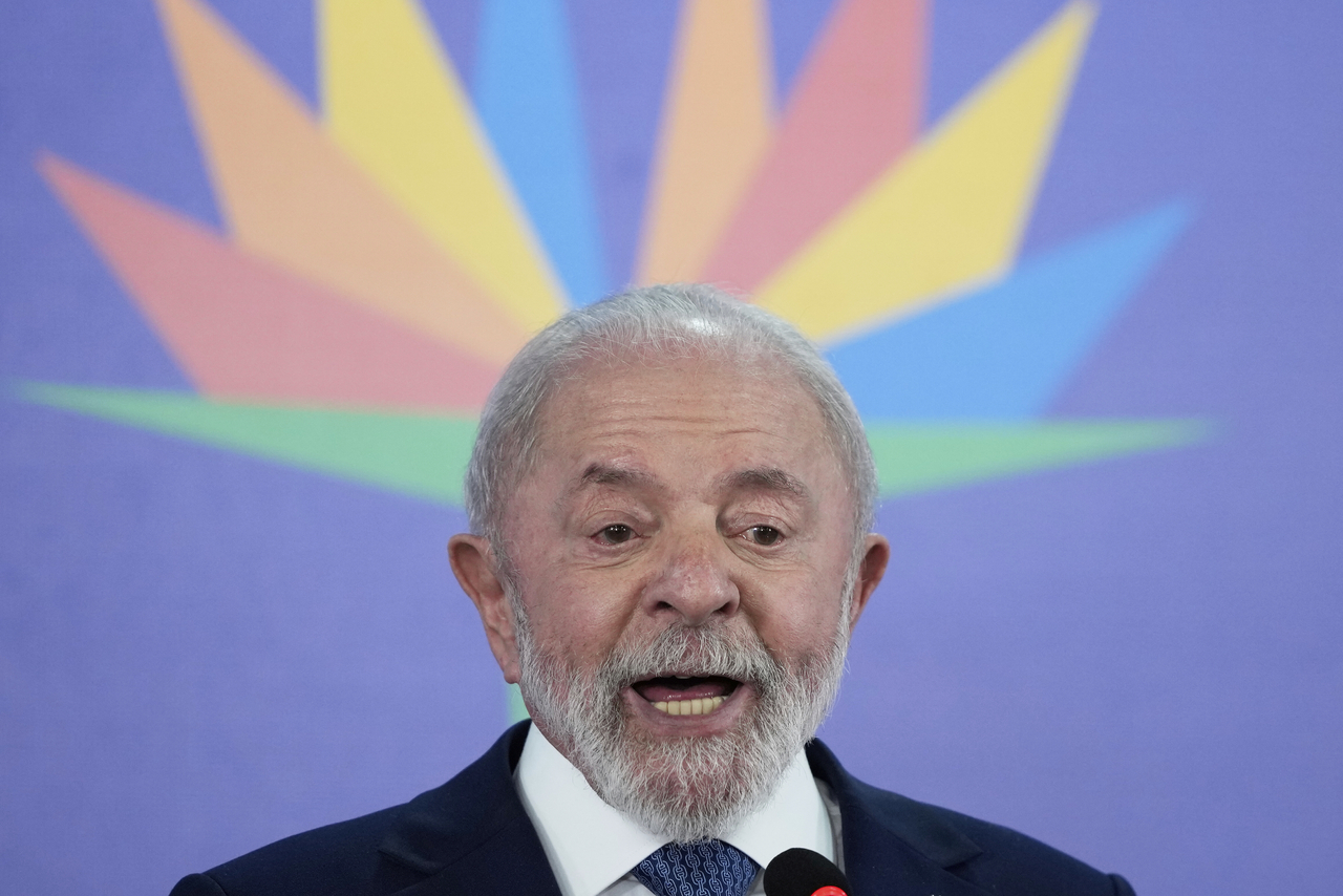 | 루이스 이나시우 룰라 다시우바 브라질 대통령이 7일(현지시간) 리리우데자네이루에서 진행된 17차 브릭스 정상회의에서 연설하고 있다. [AP] |