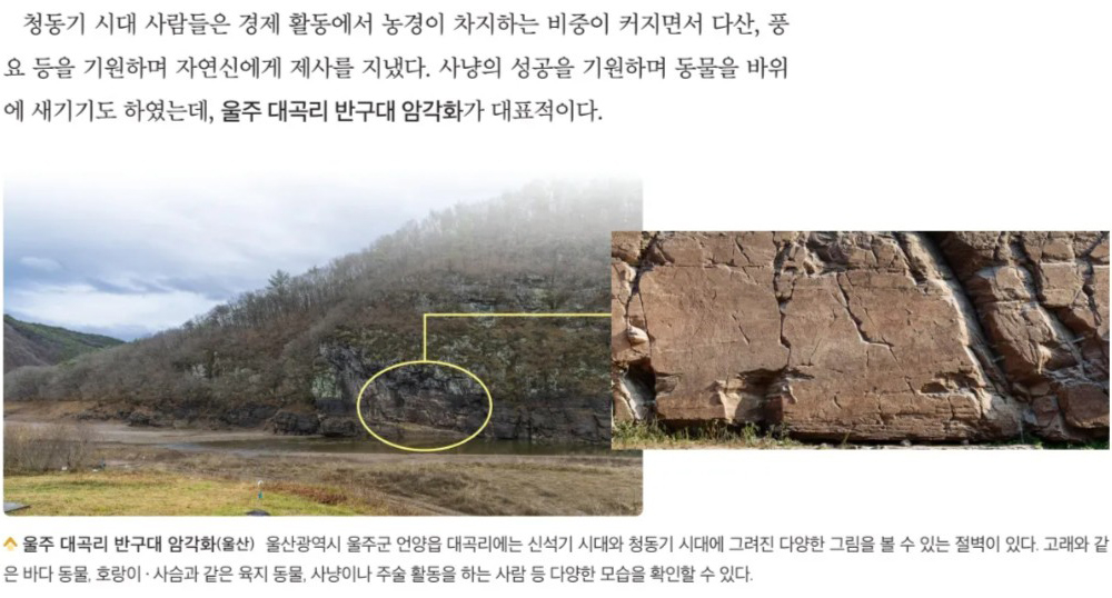 리베르스쿨이 펴낸 2025학년도 <중학교 역사2> 교과서 11쪽에는 청동기 시대를 설명하면서 “울주 대곡리 반구대 암각화가 대표적”이라고 기술하고 있다.
