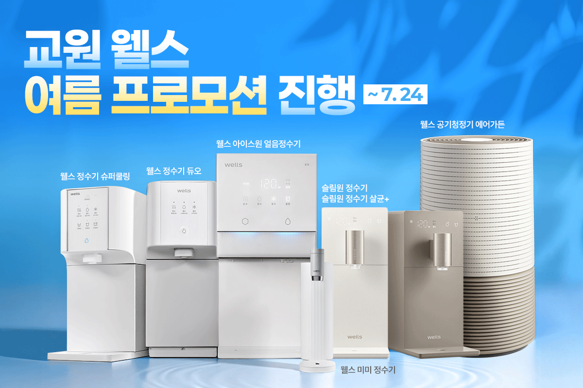 [헤럴드경제=김광우 기자] 교원 웰스(Wells)는 본격적인 여름철을 맞아 ‘여름 위생 가전 프로모션’을 오는 24일까지 진행한다고 16일 밝혔다.
