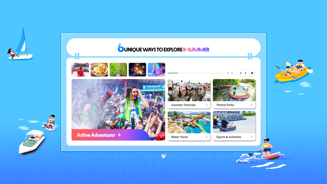 특집전에서는 ▷활동형 모험가 ▷역사형 문화탐방가 ▷미식 탐험가 ▷자연 애호가 ▷야경 콜렉터 ▷실내 탐방가 등 6가지 여행 성향에 따른 맞춤형 추천 여행지와 체험 활동을 소개한다.