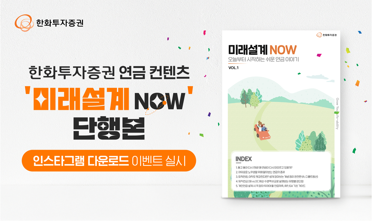 [헤럴드경제=유동현 기자] 한화투자증권은 연금 컨텐츠 ‘미래설계 NOW’ 단행본 발간 기념 인스타그램 다운로드 이벤트를 오는 31일까지 실시한다고 18일 밝혔다.