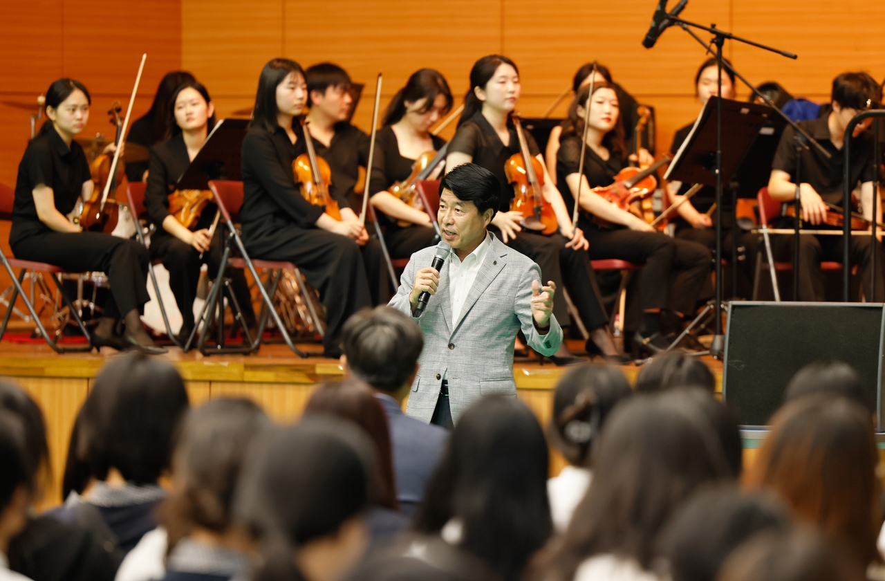 구는 지난 2023년부터 3년째 ‘학교로 찾아가는 오케스트라’를 열고 있다. 평소 바쁜 학업으로 예술을 접하기 어려운 학생들에게 공연 관람 기회를 제공, 음악적 취향의 폭을 확장하기 위함이다. 무엇보다도, 학업에 지장 없이 학교라는 생활공간에서 품격 있는 오케스트라를 접한다는 것이 큰 장점이다.