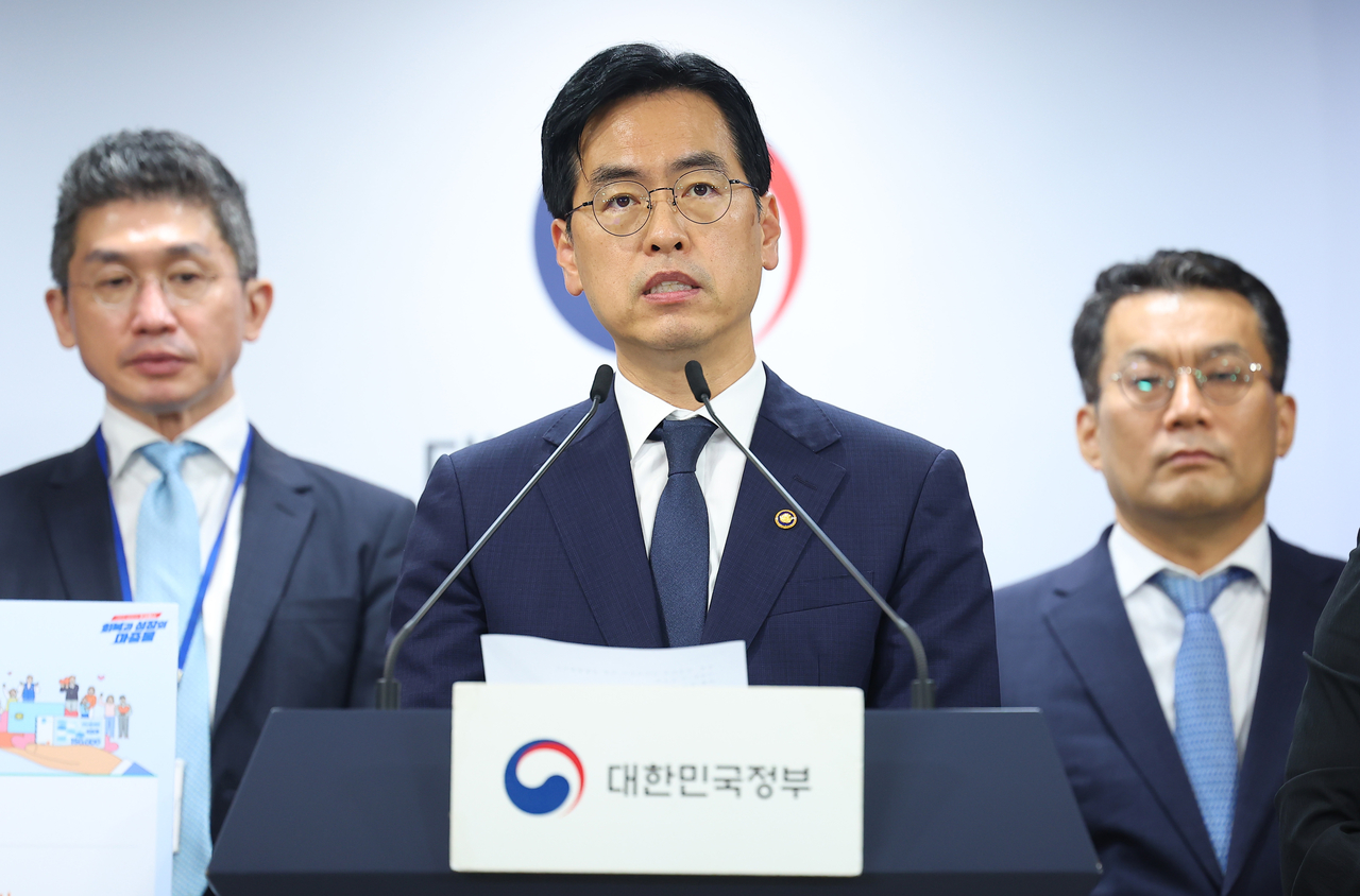 | 김민재 행정안전부 차관이 지난 5일 정부서울청사 브리핑룸에서 민생회복 소비쿠폰 1차 지급계획을 발표하고 있다. [연합] |
