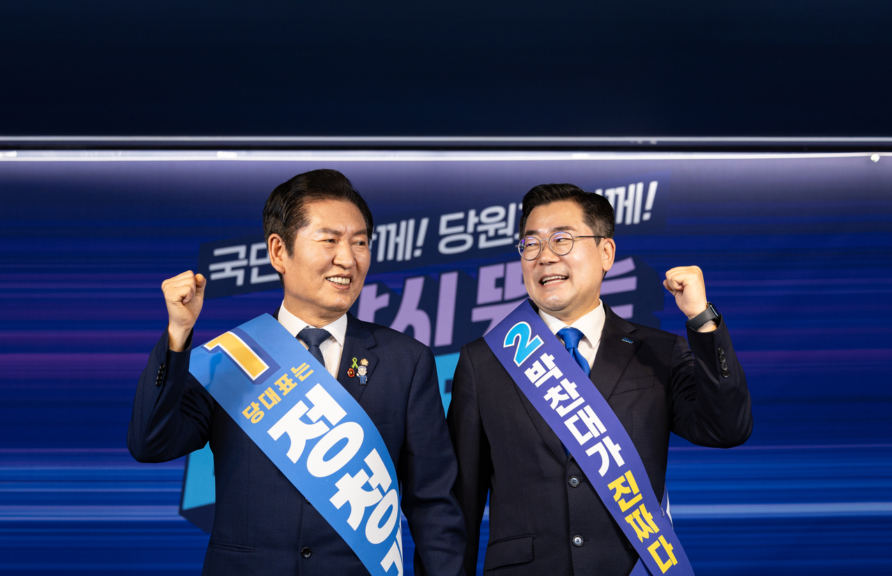 정 후보와 박 후보는 선거 운동에서 이른바 명심(明心·이재명 대통령의 의중)을 놓고도 자신이 더 우위에 있다고 밝혔다. 하지만 이 대통령이 당권 경쟁과 관련, ‘이기는 편이 내 편’이라고 말한 것으로 알려지면서 명심은 이날 투표에서 주요 변수로 작용하지 않은 것으로 풀이된다.