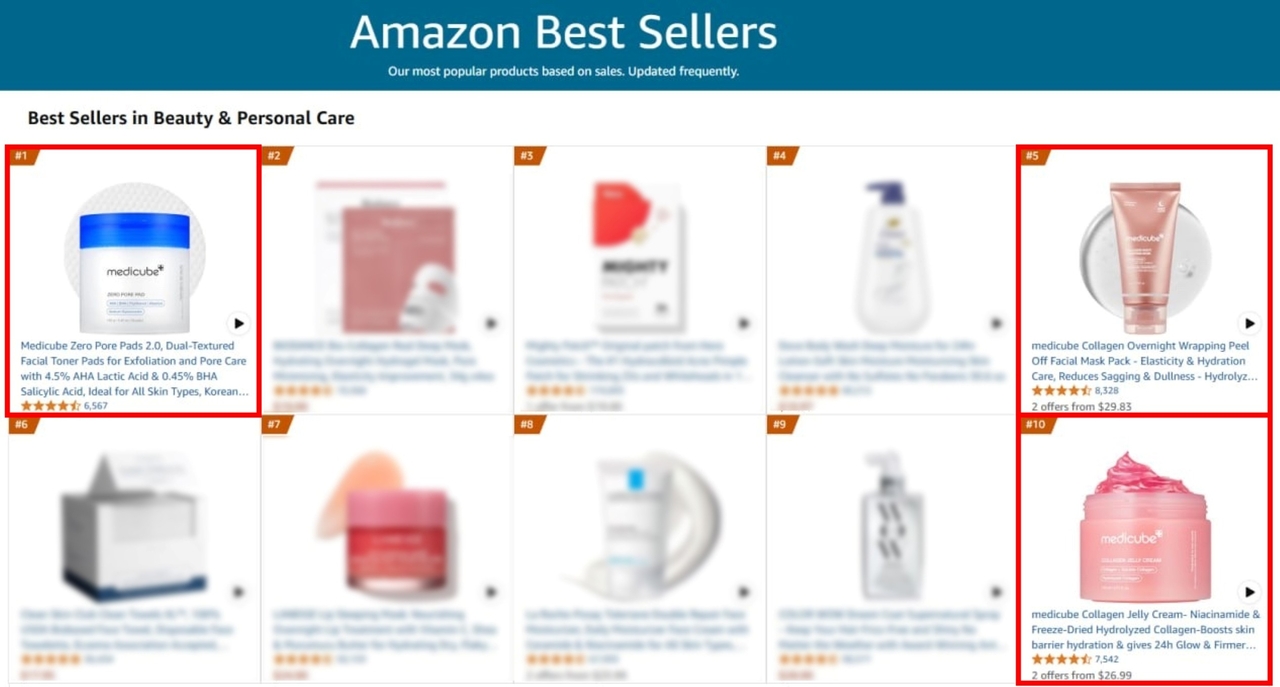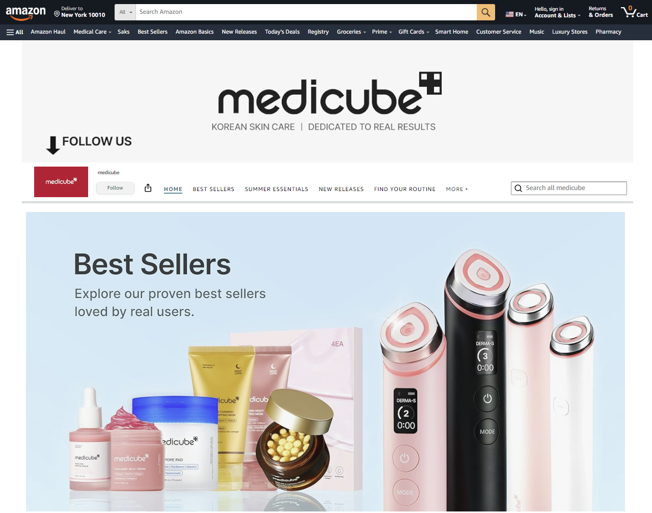 메디큐브의 폭발적인 인기가 발판이 됐다. 아마존 자체 집계 결과에 따르면 검색어 ‘메디큐브(medicube)’는 프라임 데이 시작 전부터 검색 순위 상위권에 올랐다. 행사 기간에는 뷰티 부문 검색어 1위를 차지했다. 아마존 전체 검색 순위에서도 9위에 올랐다.