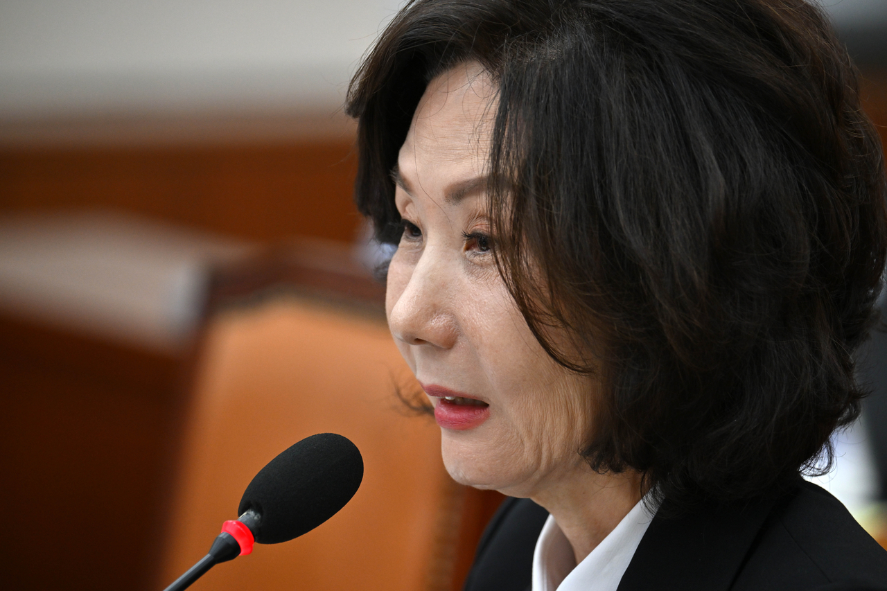 | 이진숙 교육부 장관 후보자가 16일 오후 서울 여의도 국회 교육위원회에서 열린 인사청문회에 참석해 의원들의 질의에 답변하고 있다. 임세준 기자 |