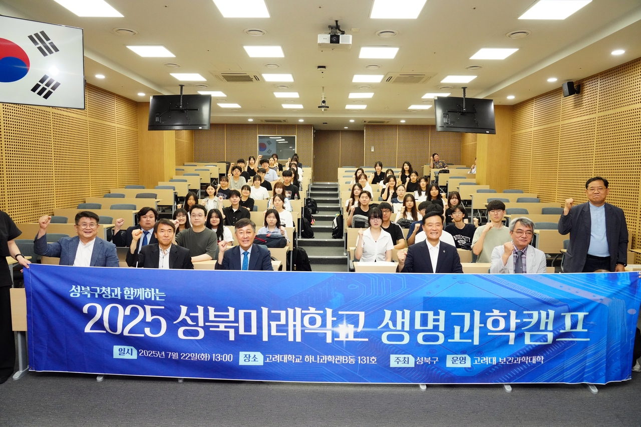 [헤럴드경제=박종일 기자]고교학점제 전면 시행에 발맞춰 지역 고등학생의 전공 탐색과 진로 설계를 돕기 위해 ‘성북미래학교’를 본격 추진하고 있는 서울 성북구(구청장 이승로)가 22일 고려대 보건과학대학에서 ‘생명과학 전공캠프 개회식’을 개최했다.