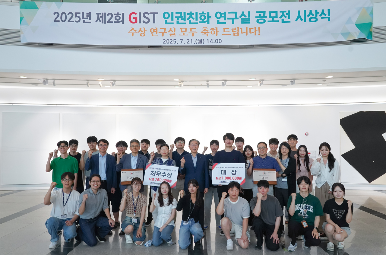 GIST는 수상 연구실에 ‘인권친화 연구실’ 현판을 전달하고, 대상 연구실에 100만 원, 최우수상 연구실에는 75만 원의 상금을 수여했다.