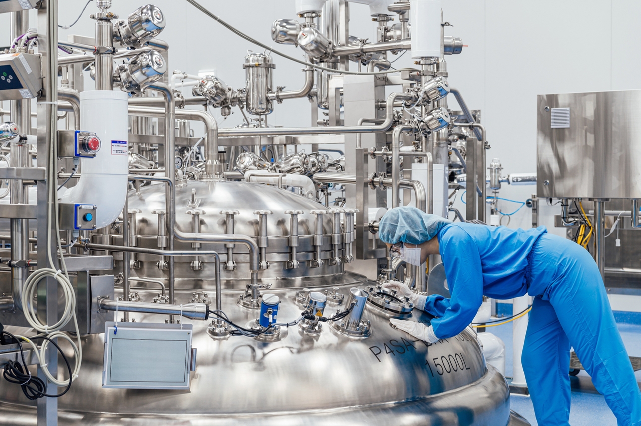 | 삼성바이오로직스 직원이 4공장 배양기를 점검하고 있는 모습. [삼성바이오로직스 제공] |