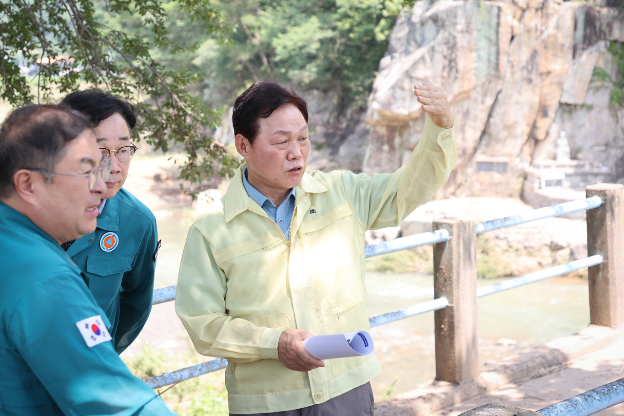 | 박완수 도지사가 하동군 수해피해 현장을 방문해 이삼희 부군수에게 당시 상황을 설명 듣고 있다. [경남도 제공] |
