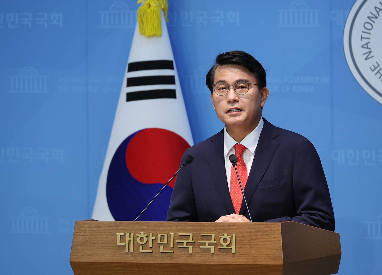 | 윤상현 국민의힘 의원이 24일 서울 여의도 국회 소통관에서 최근 자신이 주최한 토론회 관련 논란에 대해 기자회견을 하고 있다. [연합] |