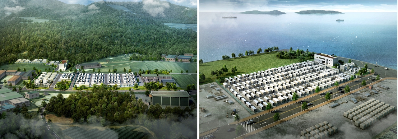 | 왼쪽부터 전남 고흥 BESS(가칭) 조감도와 전남 광양 BESS(가칭) 조감도. [BS한양 제공] |