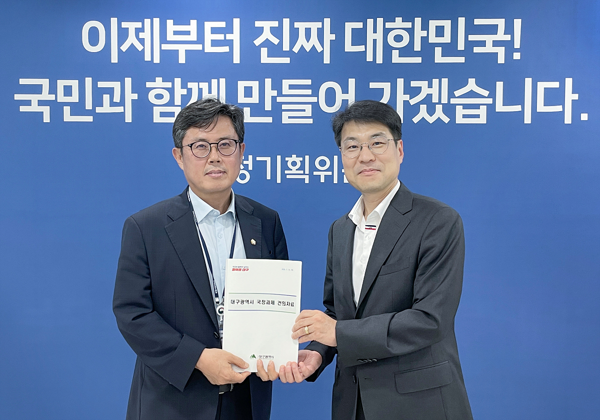 김정기 대구시장 권한대행 행정부시장은 “대구의 핵심 현안은 정부정책과 긴밀히 연계되는 것이 많다”며 “국정과제로 채택돼 속도감 있게 추진될 수 있도록 최선의 노력을 다하겠다”고 강조했다.