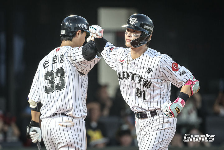 4회말 전준우의 볼넷으로 만든 1사 1루에서 윤동희가 KIA 선발 김건국을 상대로 좌월 투런포를 날렸다. 이어 손호영의 우중간 2루타로 만든 2사 2루에서 박승욱이 강습 타구를 날렸고, KIA 2루수 박민이 공을 더듬는 사이 손호영이 홈까지 내달렸다.