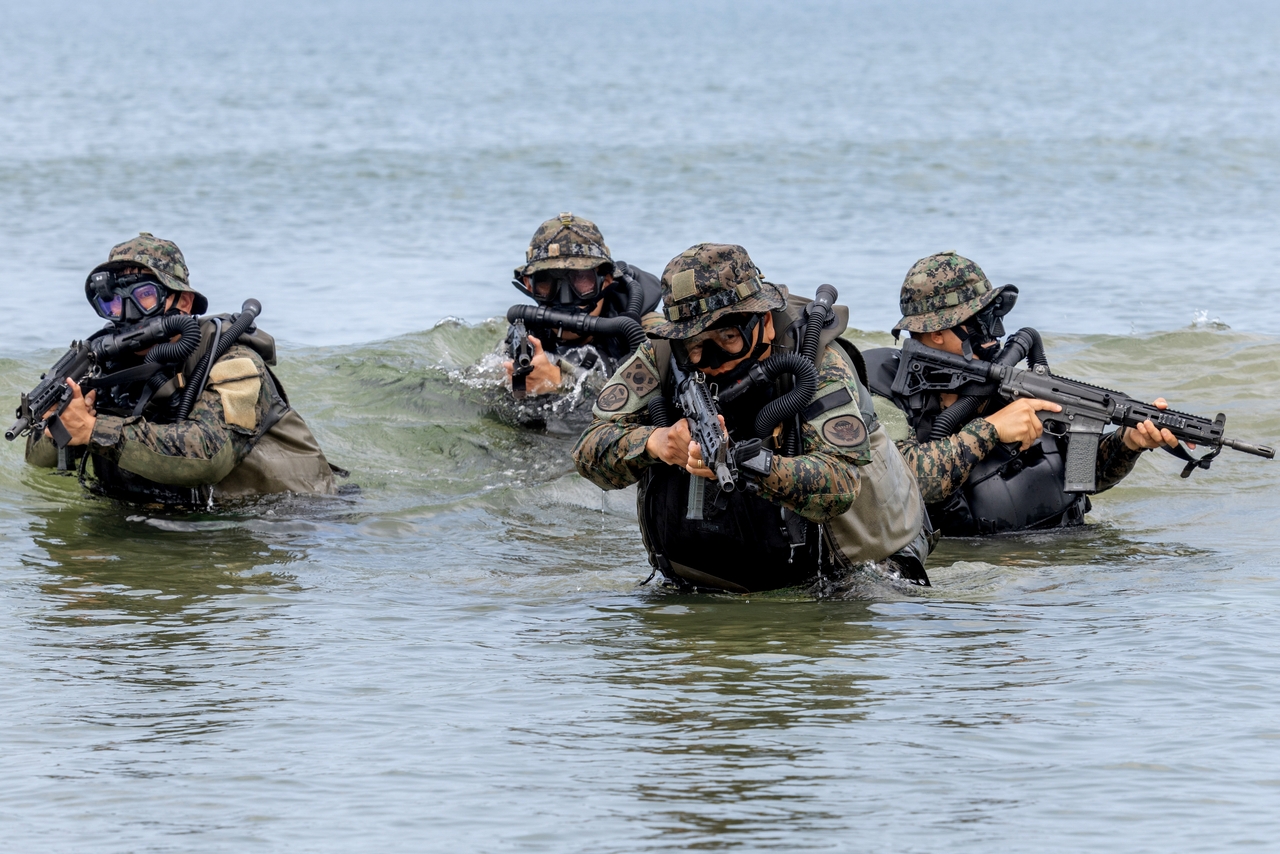 | 귀성부대 특전대원들이 해상은밀침투 훈련을 하고 있다. [연합] |