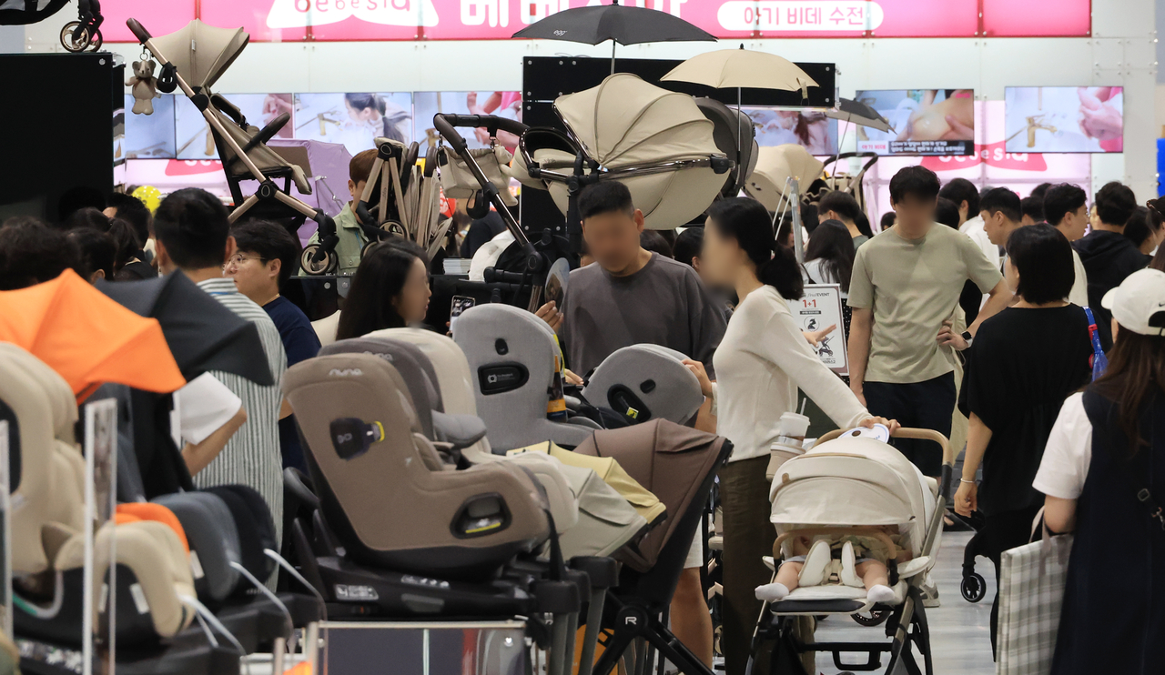 | 지난 6월 19일 서울 강서구 코엑스마곡 컨벤션센터에서 열린 ‘2025 맘스홀릭베이비페어’에서 관람객들이 육아용품을 살펴보고 있다. [연합] |