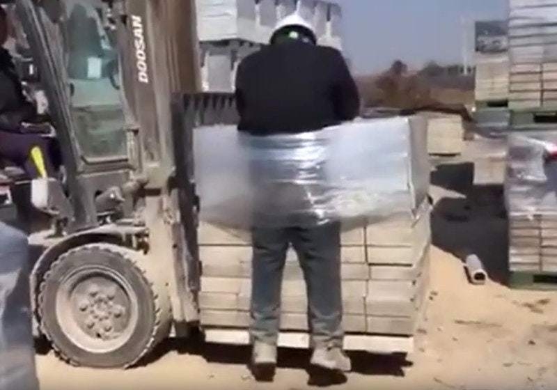 | 스리랑카 출신 30대 이주노동자가 2월 전남 나주의 한 공장에서 지게차 화물에 비닐로 묶인 채 옮겨지는 모습. 동료 이주노동자들이 이를 동영상으로 촬영했다. 전남이주노동자인권네트워크 제공 |