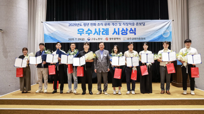 광주경총은 올 상반기 직장적응 지원사업에 참여한 850여명을 대상으로 지난 5월 26일부터 6월 13일까지 직장적응 만족도 우수사례 공모를 거쳐 광주고용노동청장상(6명), 광주경총회장상(4명) 등 총 10명을 선정해 지난 25일 홀리데이인 광주호텔에서 시상식을 가졌다.