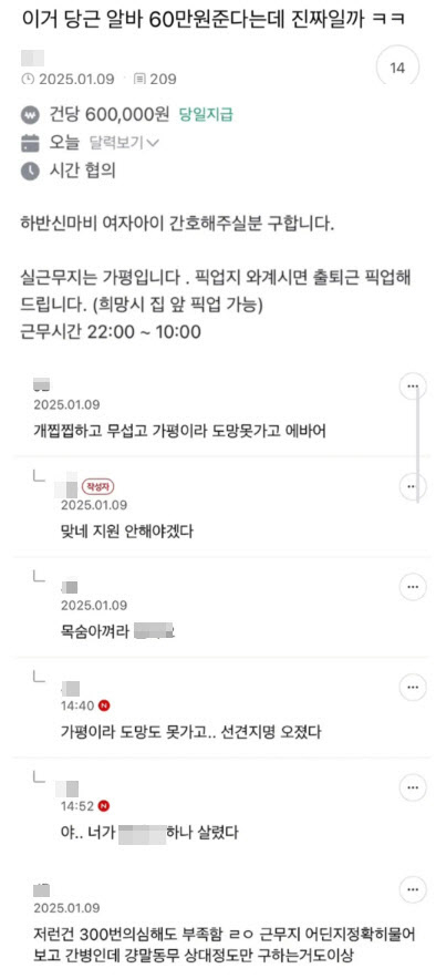 | 지난 1월 당근마켓에 올라온 구인 글 [온라인 커뮤니티 갈무리] |