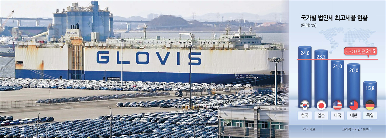 현재 우리나라 법인세 최고세율(과세표준 3000억원 초과)은 24%다. 지방세를 포함하면 26.4%다. 앞서 윤석열 정부가 최고세율을 기존 25%에서 1% 포인트 내렸으나 새 정부는 세수 부족을 이유로 다시 인상을 추진 중이다.