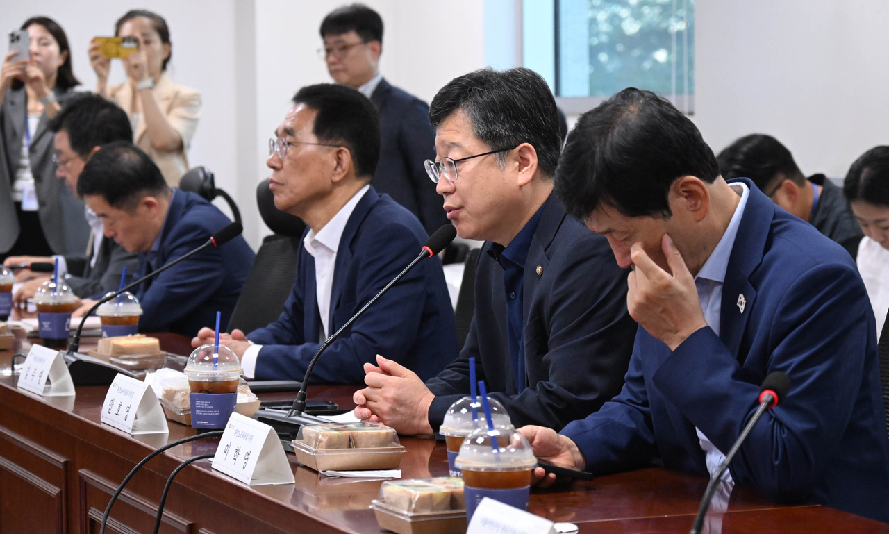 [헤럴드pic] 노란봉투법 당정협의회 개최 글꼴 선택 본문 텍스트 크게본문 텍스트 작게 인쇄 안호영 국회 환경노동위원장이 28일 서울 여의도 국회 의원회관에서 열린 국회 환경노동위원회 실무당정협의회에 참석해 발언하고 있다. 이상섭 기자