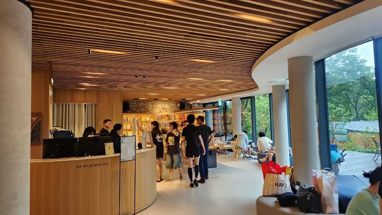 엄마들은 자연휴양시설에 식당과 카페가 있어 좋아한다.