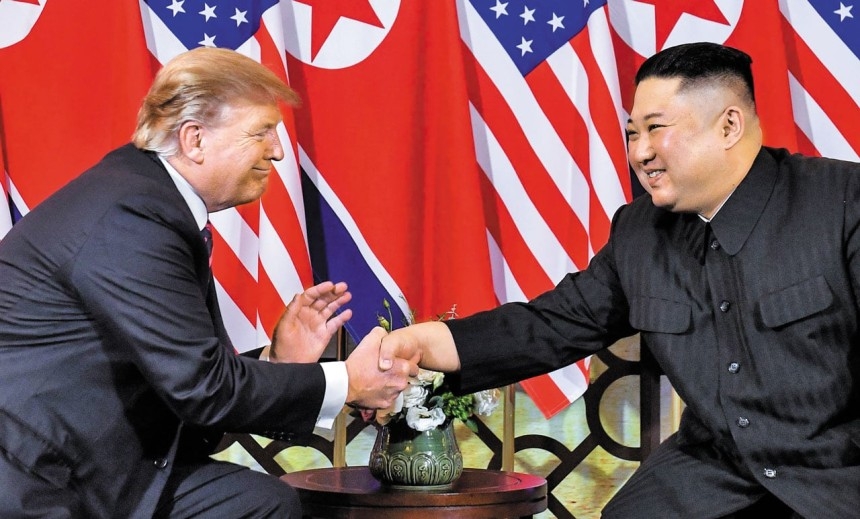 | 지난 2019년 2월 베트남 하노이에서 열린 북ㅁ미 정상회담에서 도널드 트럼프 미국 대통령과 김정은 북한 국무위원장이 악수를 하는 모습 [AFP] |