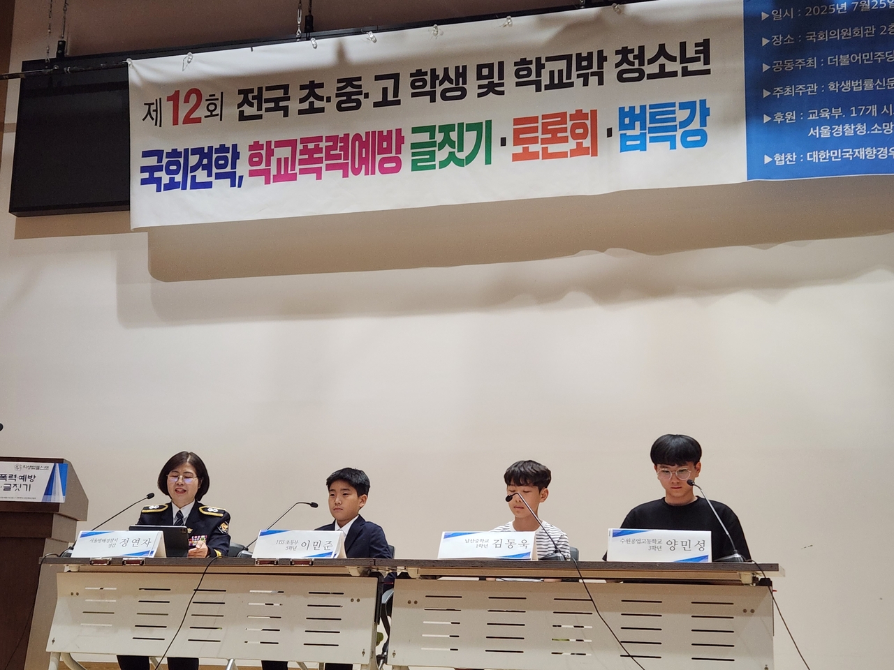 천 의원은 축사를 통해 “학교폭력은 한 사람의 삶 전체를 뒤흔들 수 있는 중대한 문제”라며 “여러분의 문제의식이 현실을 바꾸는 힘이 되기를 바란다”고 전했다.