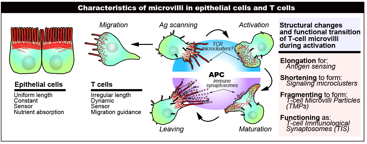 | T세포 미세융모의 다양한 생리학적 역할 개요.[GIST 제공] |