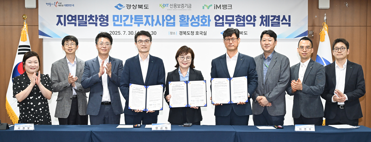 [헤럴드경제(안동)=김병진 기자]경북도와 신용보증기금, 아이엠뱅크는 지난 30일 도청 호국실에서 ‘지역 밀착형 민간투자 사업 활성화’를 위한 업무협약을 체결했다.