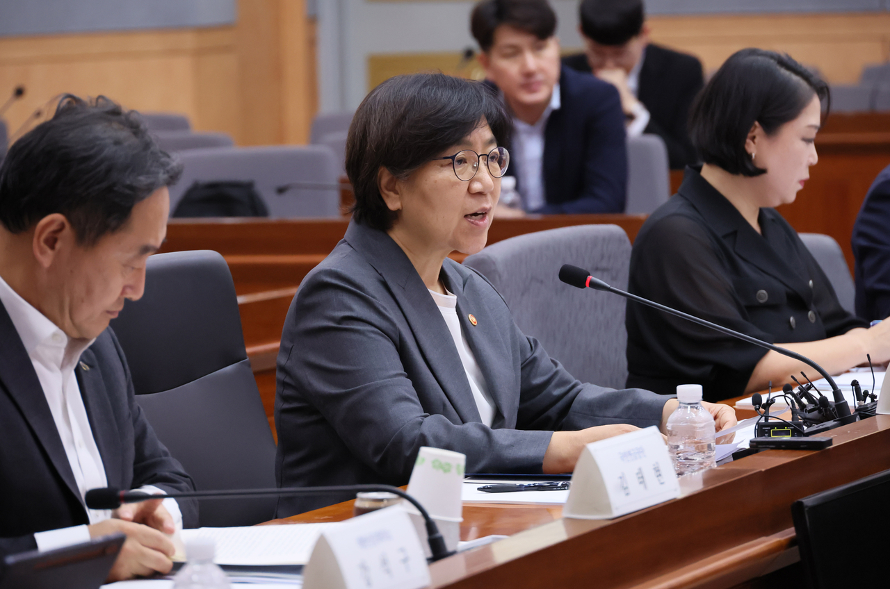 | 정은경 보건복지부 장관이 1일 서울 종로구 정부서울청사 별관에서 열린 제5차 국민연금기금운용위원회에서 발언하고 있다.[연합] |