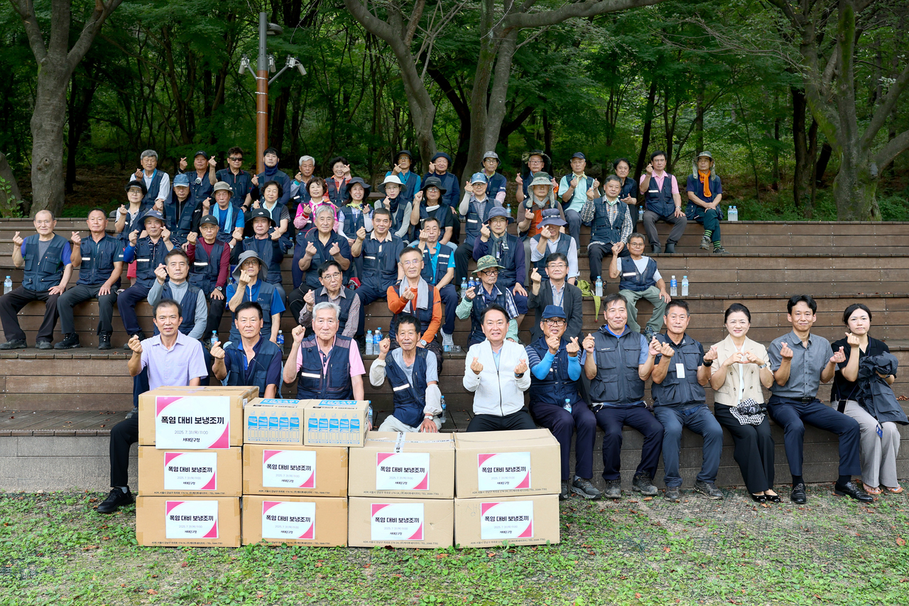 [헤럴드경제=박종일 선임기자]이성헌 서대문구청장이 폭염 속 현업 근로자 건강 보호를 위해 보냉조끼를 챙겼다.