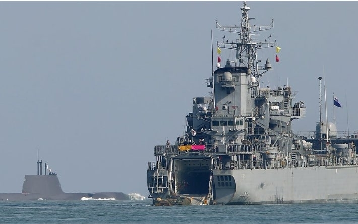 | 해군은 31일 “오늘 오후 3시 49분께 진해 군항에 입항 중이던 상륙함 향로봉함 보조기관실(발전기실)에서 화재가 발생해 진압 중”이라며 “함 승조원과 편승인원 180여명 중 현재까지 환자 2명이 발생했다”고 밝혔다. 자료사진. [연합] |