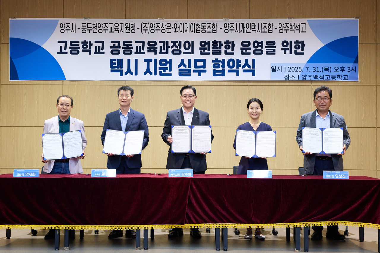 시는 지난달 31일 양주백석고등학교에서 ‘고등학교 공동교육과정 운영 택시 지원 업무협약’을 체결했다.