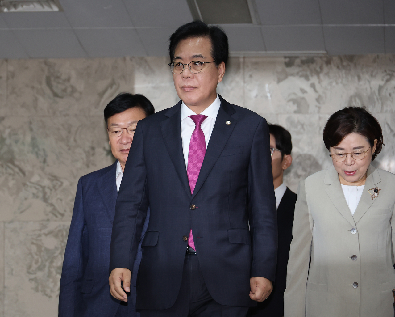 | 송언석 국민의힘 비상대책위원장 겸 원내대표가 1일 오전 국회에서 열린 원내대책회의에 참석하고 있다. [연합] |
