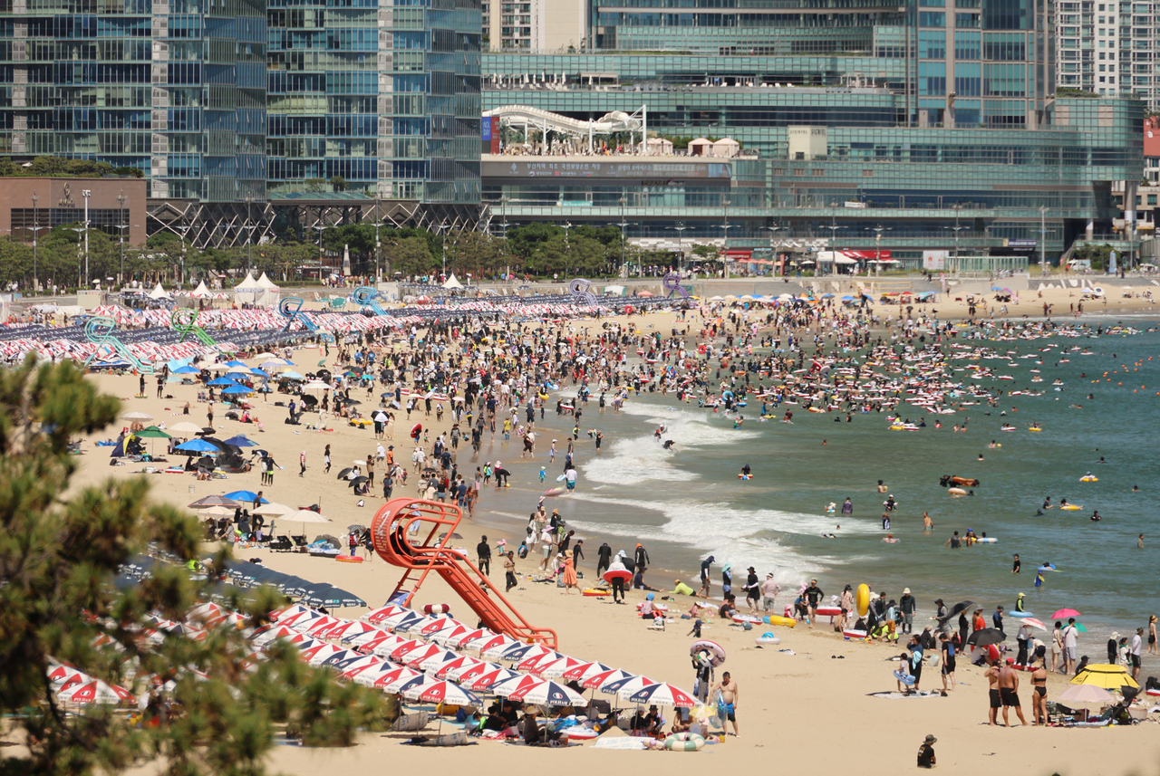 | 부산 해운대해수욕장에서 피서객들이 물놀이하며 더위를 식히고 있다. 사진은 기사와 무관. [연합뉴스] |