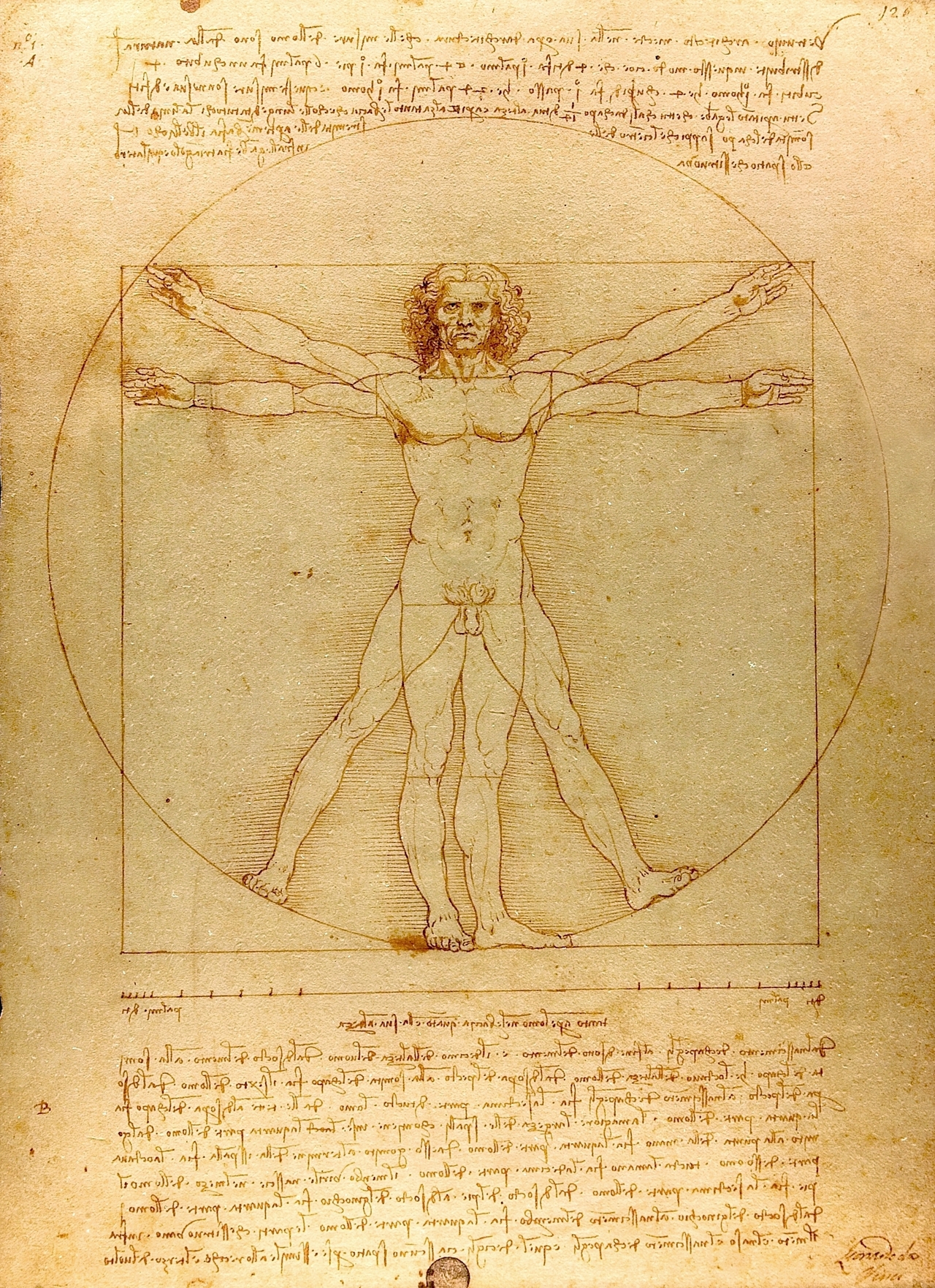 | 레오나르도 다 빈치, 비트루비우스적 인간, 1492년경, 종이에 펜 등, 아카데미아 미술관 |