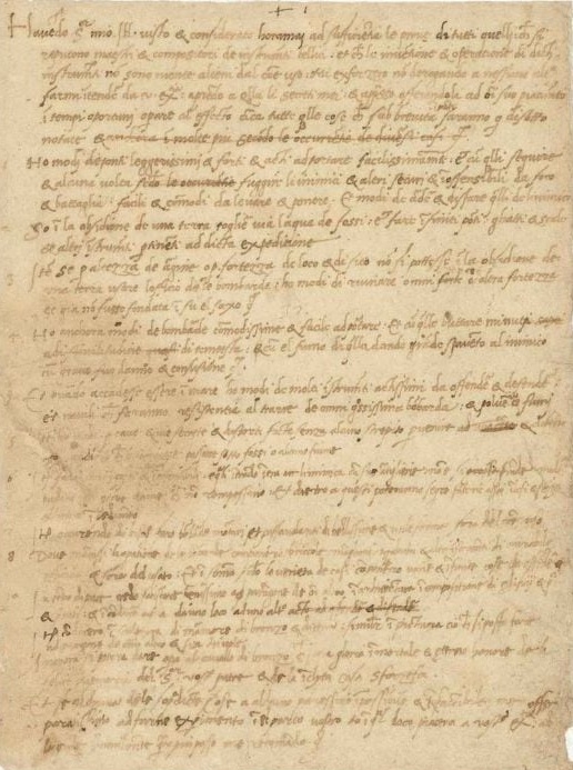 | 레오나르도 다 빈치, 루도비코 스포르차 공작에게 쓴 글, 양피지에 잉크, 밀라노 암브로시아나 도서관 |