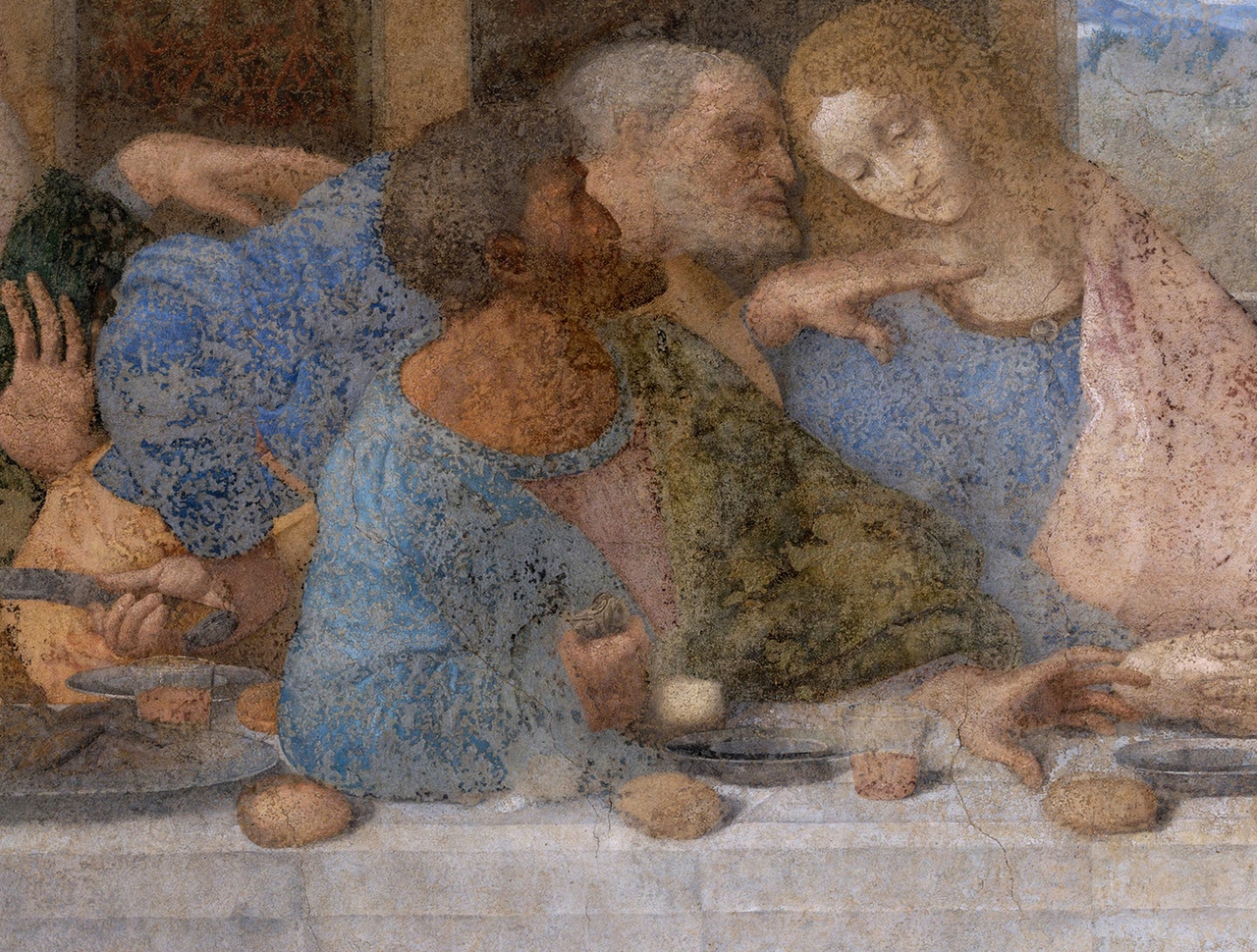 | 레오나르도 다 빈치, 최후의 만찬(유다 부분 확대) |