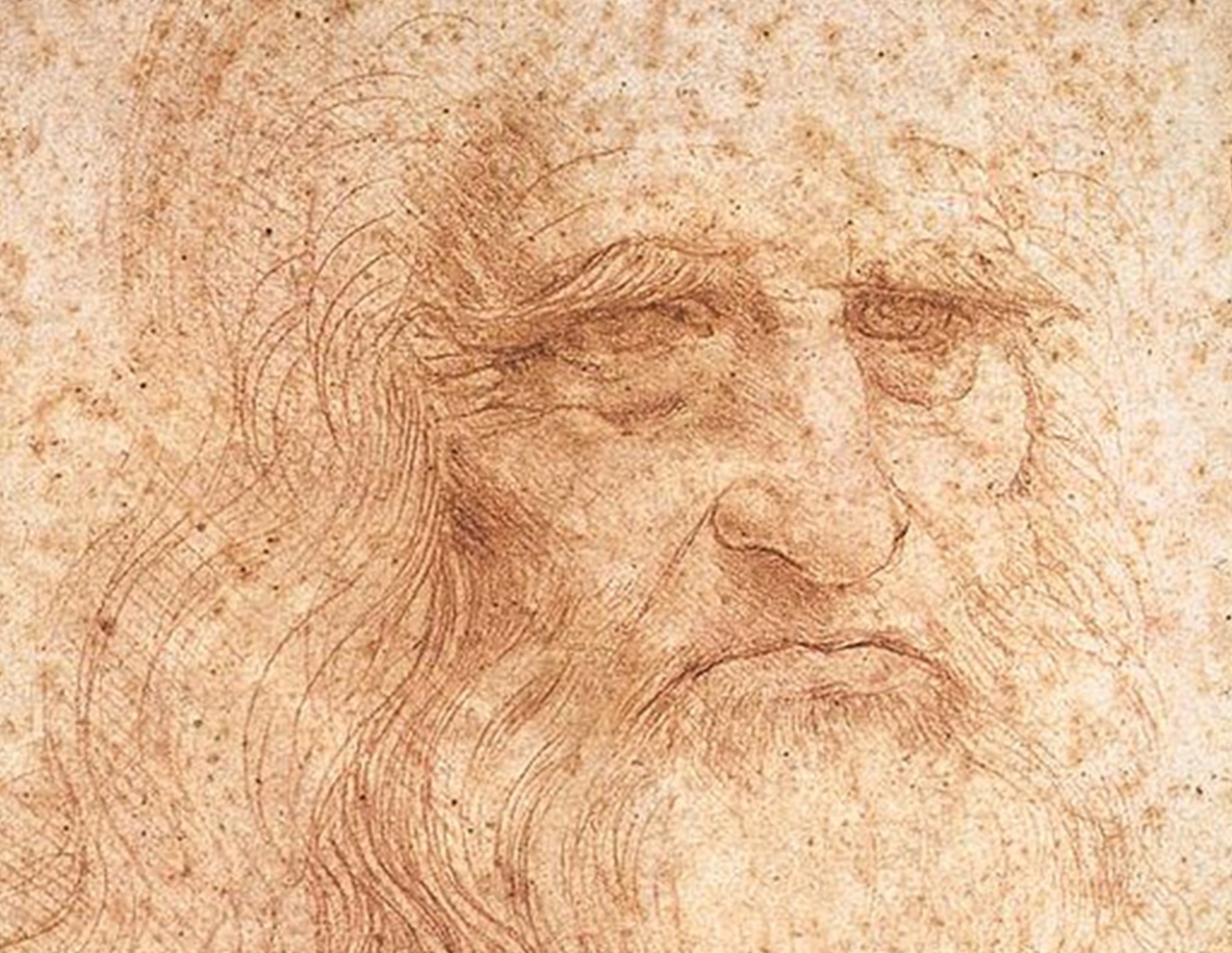 | 레오나르도 다 빈치, 자화상(추정·일부 확대), 1512년경, 종이에 붉은 분필 등, 33.3×21.3cm, 토리노 왕립 도서관 |