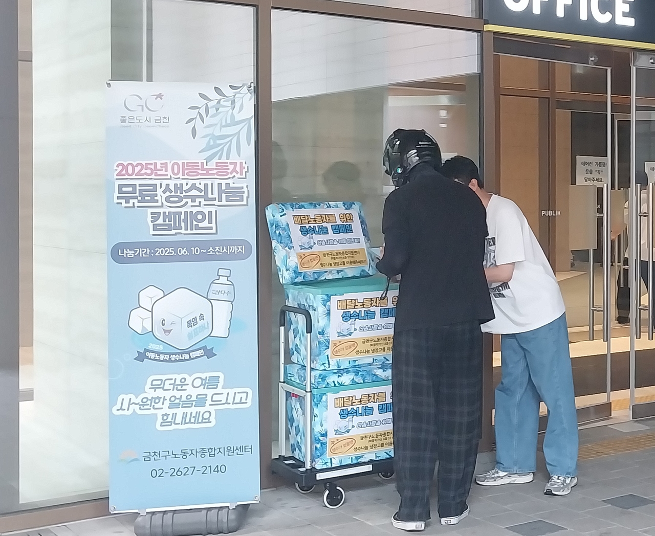 [헤럴드경제=박종일 선임기자]금천구(구청장 유성훈)는 지난 6월부터 시작한 ‘2025년 이동노동자 생수나눔 캠페인’을 폭염 장기화에 따라 8월까지 연장 운영한다고 밝혔다.